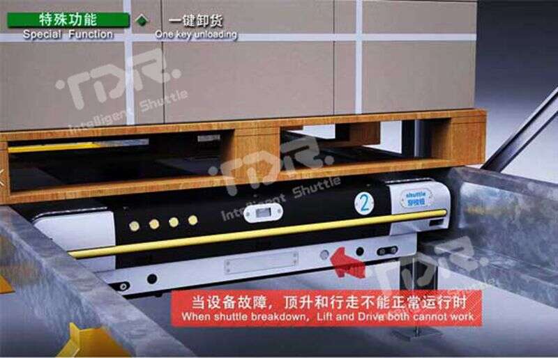 當(dāng)使用救援車(chē)救援穿梭板時(shí),如穿梭板出于重載狀態(tài),則很難將穿梭板帶貨物一起拖出,通過(guò)此功能,一鍵即可將托盤(pán)放置到軌道上,直接將穿梭板拉出即可!