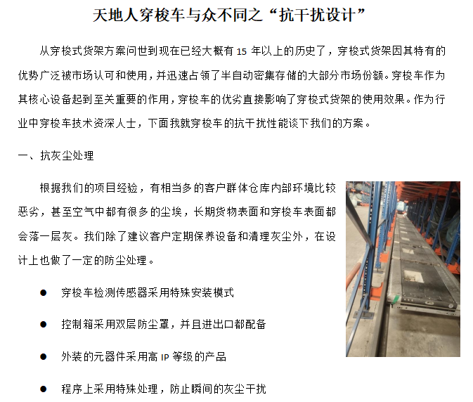 天地人穿梭車與眾不同系列之“抗干擾設(shè)計”